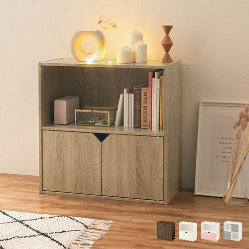 ハイタイプはありますがそこまで大型の本棚はあまりなく、また扉の付いたタイプも少なめ。