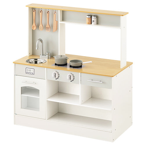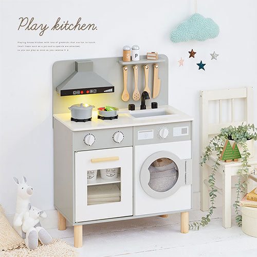 ナチュラルで優しい色合いなので、お部屋にも馴染みやすいおままごとキッチン。